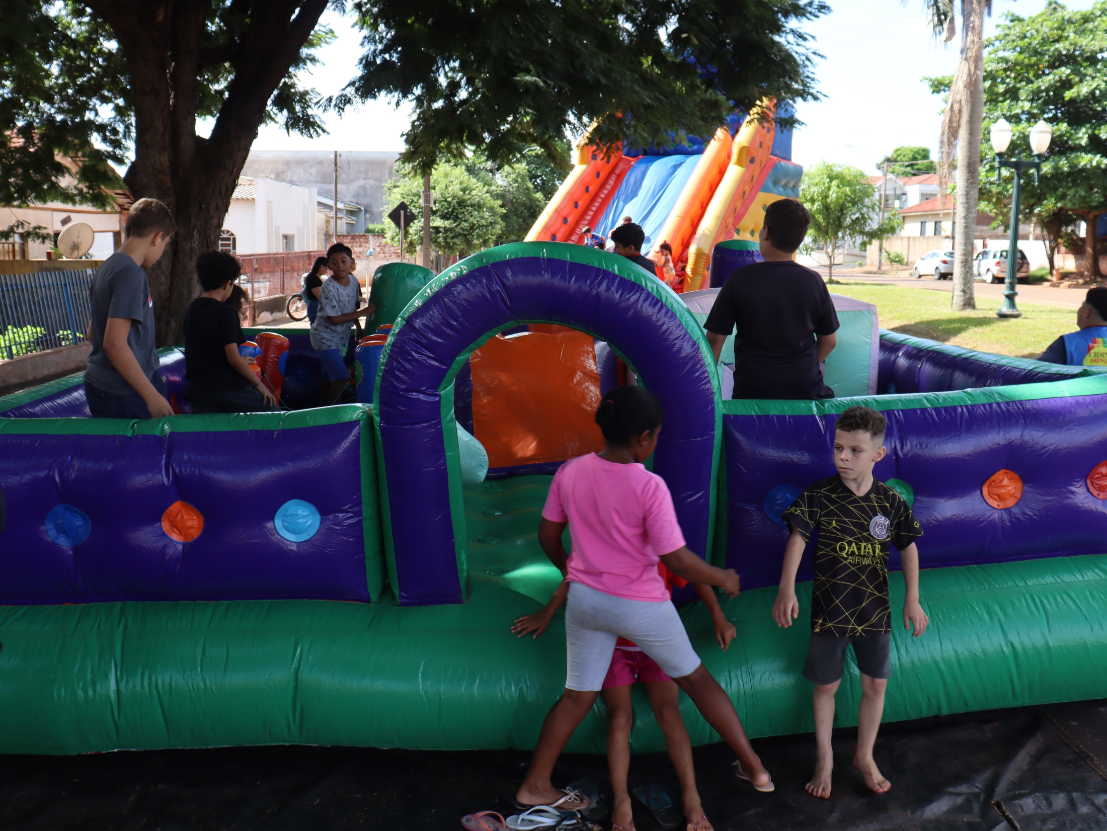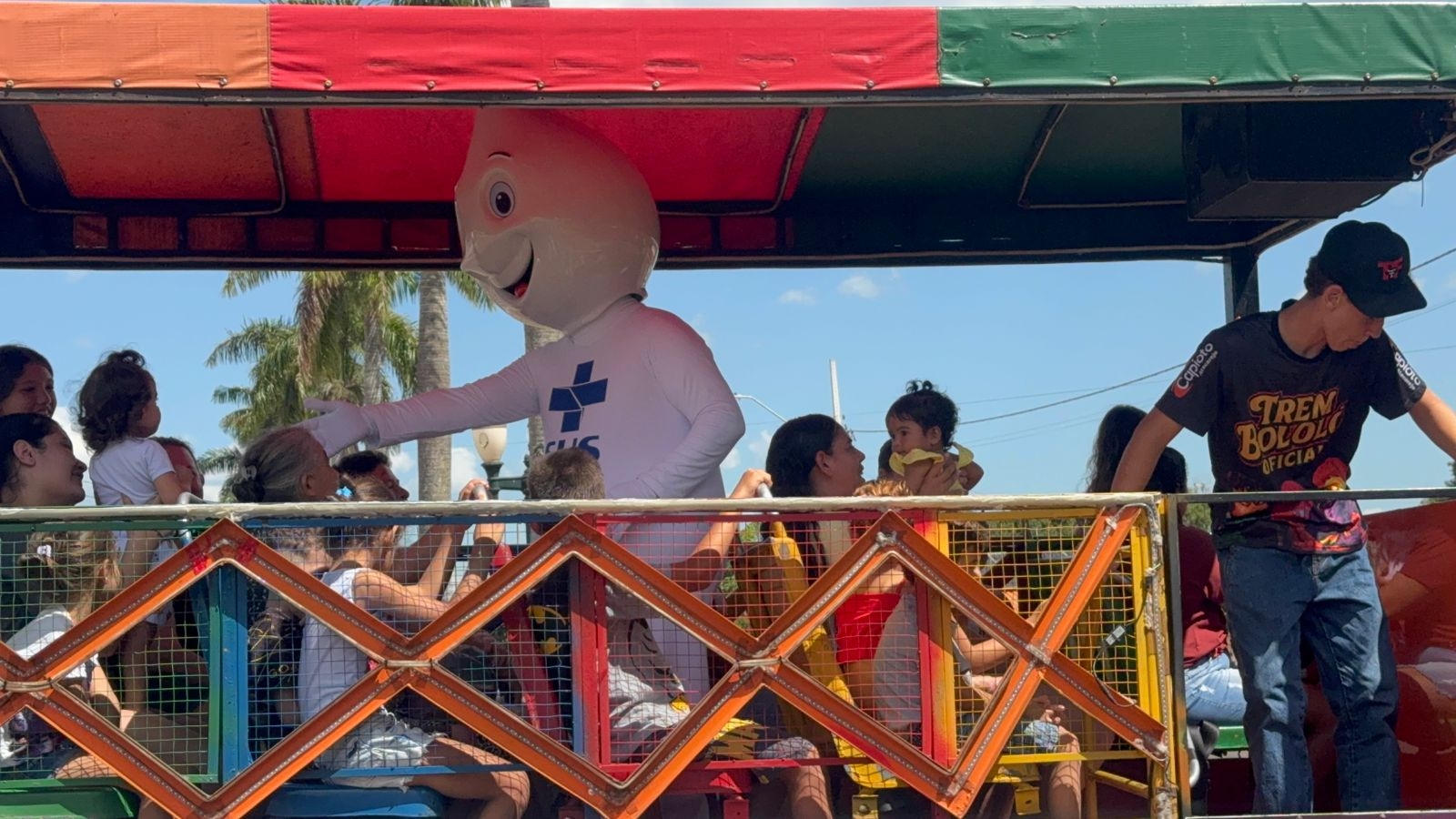 Pensando também no bem-estar das crianças e em tornar o momento mais leve e acolhedor, a campanha contou com passeio de trenzinho e brinquedos infláveis, transformando a vacinação em um momento de cuidado, prevenção e alegria para as famílias.
