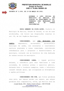 Decreto Luto Oficial em Nosso Município, Por Ocasião do Falecimento do Ex-Vereador Joel Magalhães Dos Santos