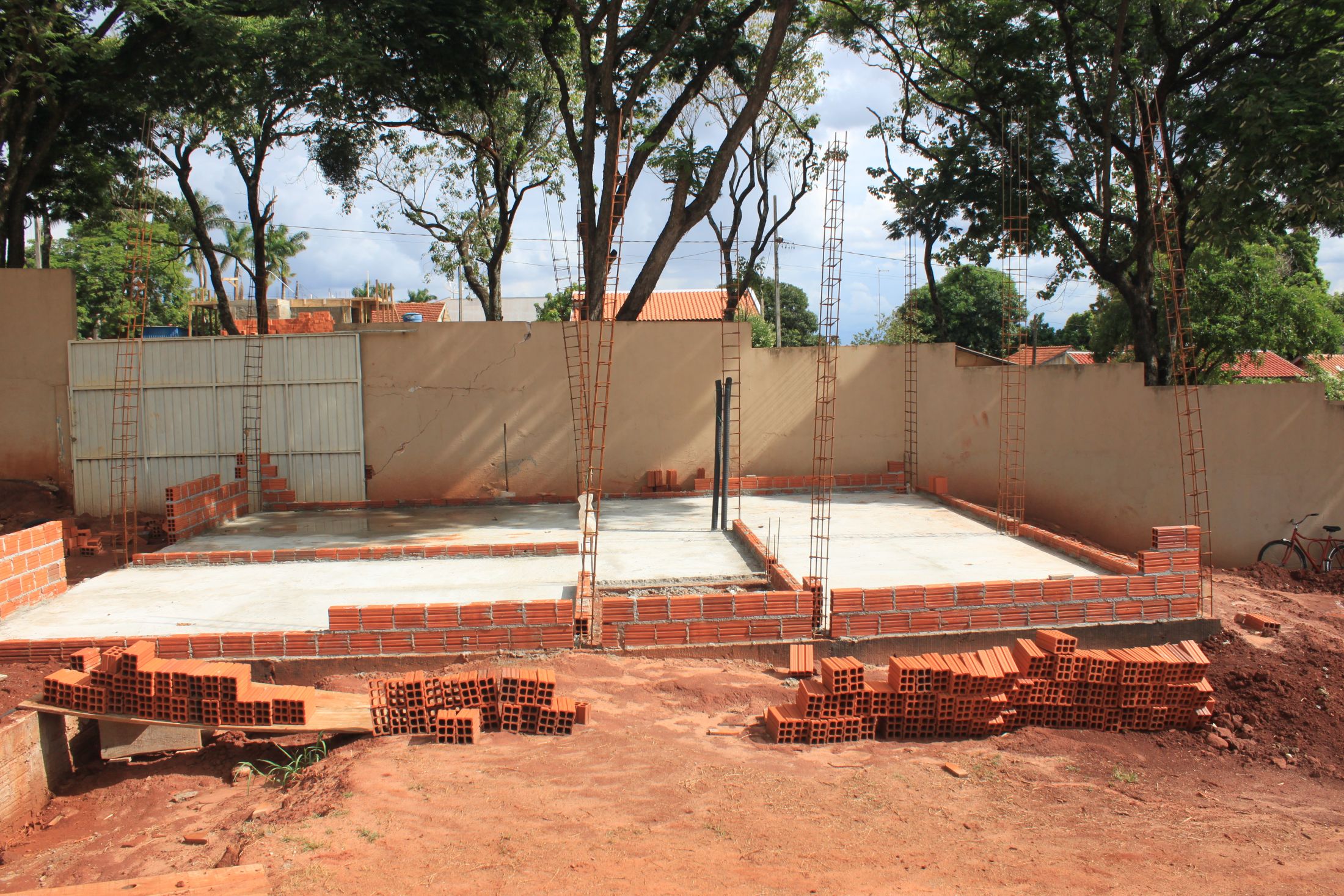 A obra está sendo realizada em anexo a quadra esportiva da escola e está em ritmo acelerado com a conclusão até o momento de 32% da mesma.