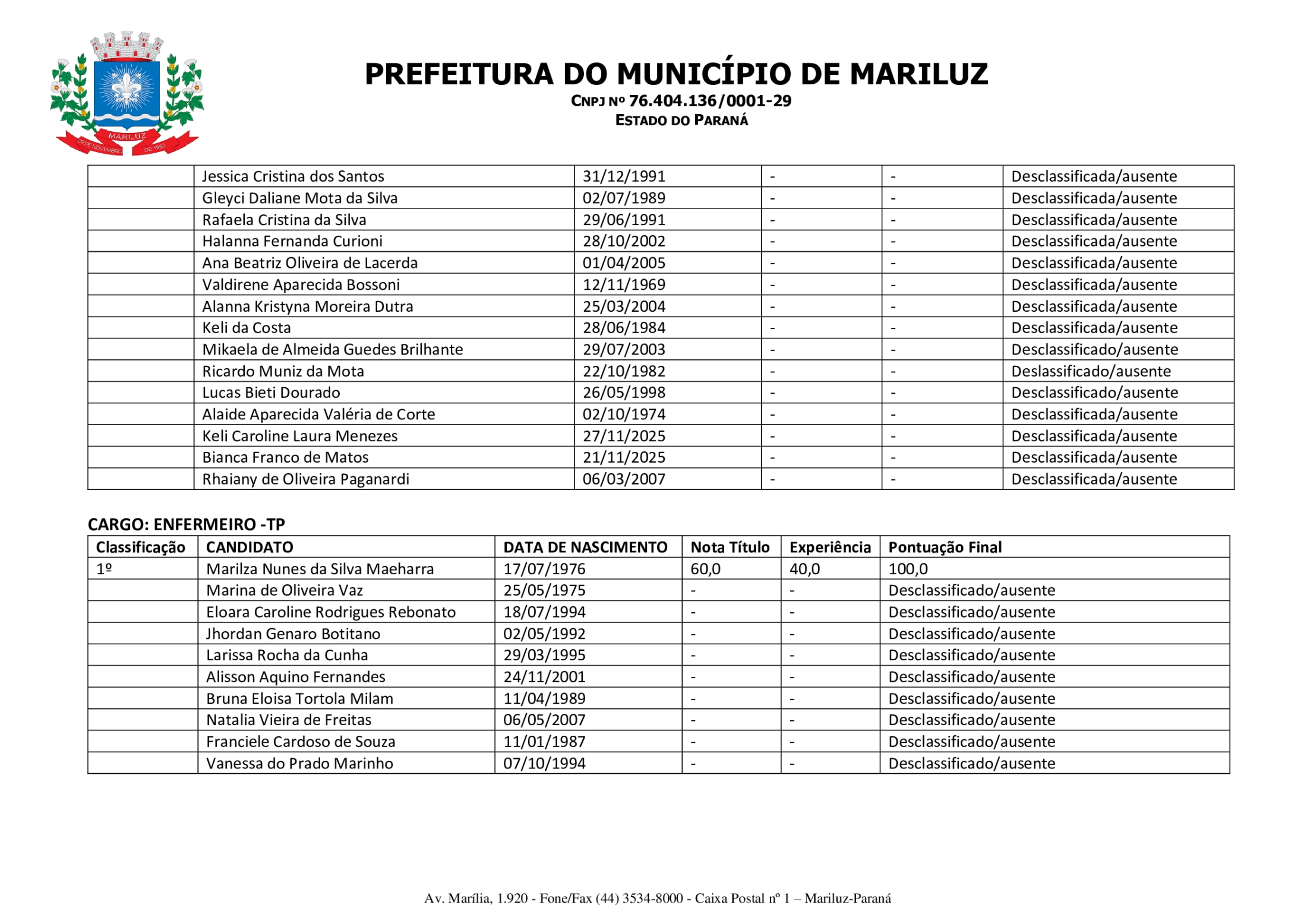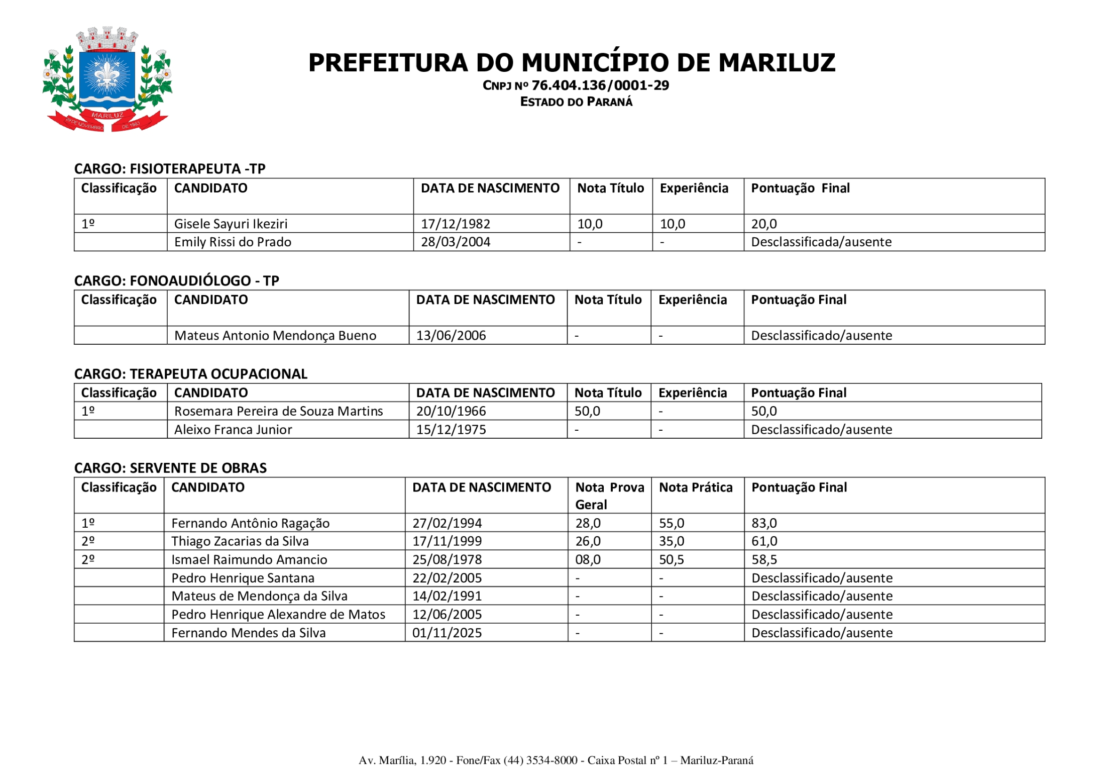 Homologação da Classificação Final do Processo Seletivo Simplificado PSS - 002/2025