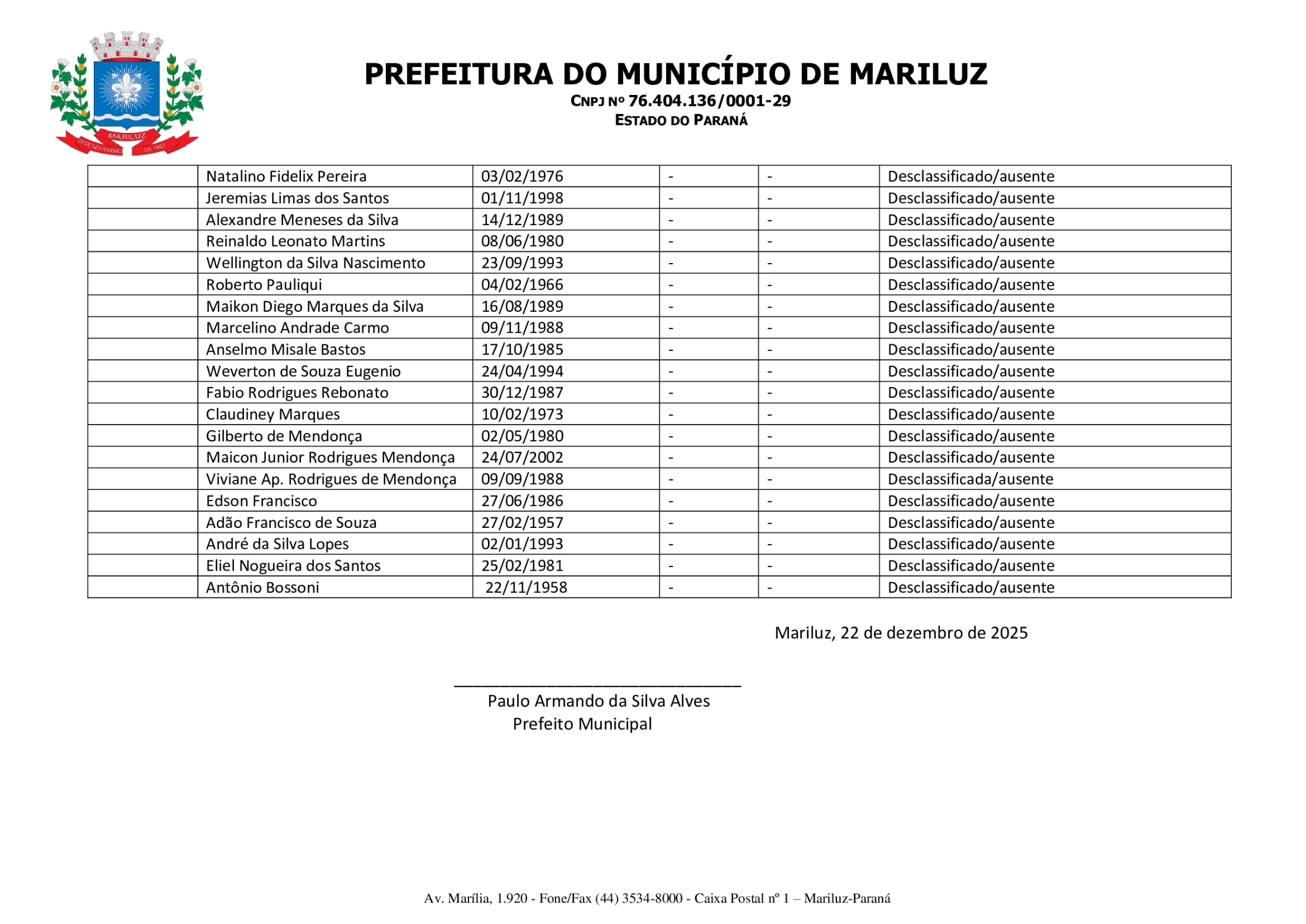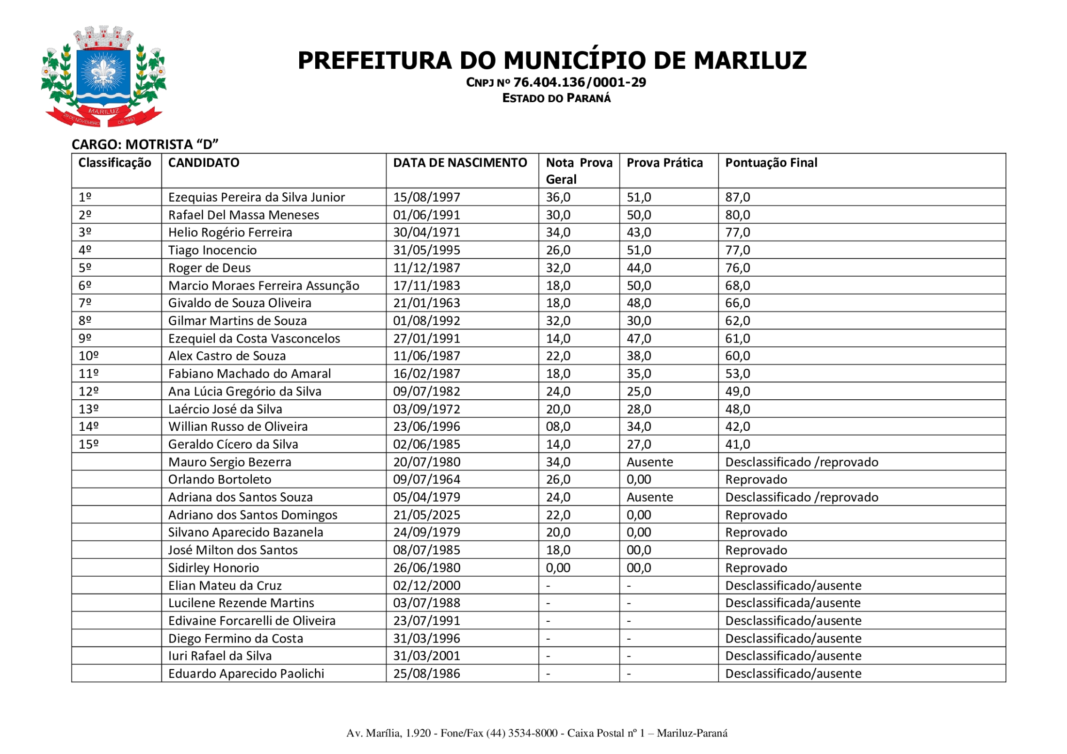 Homologação da Classificação Final do Processo Seletivo Simplificado PSS - 002/2025