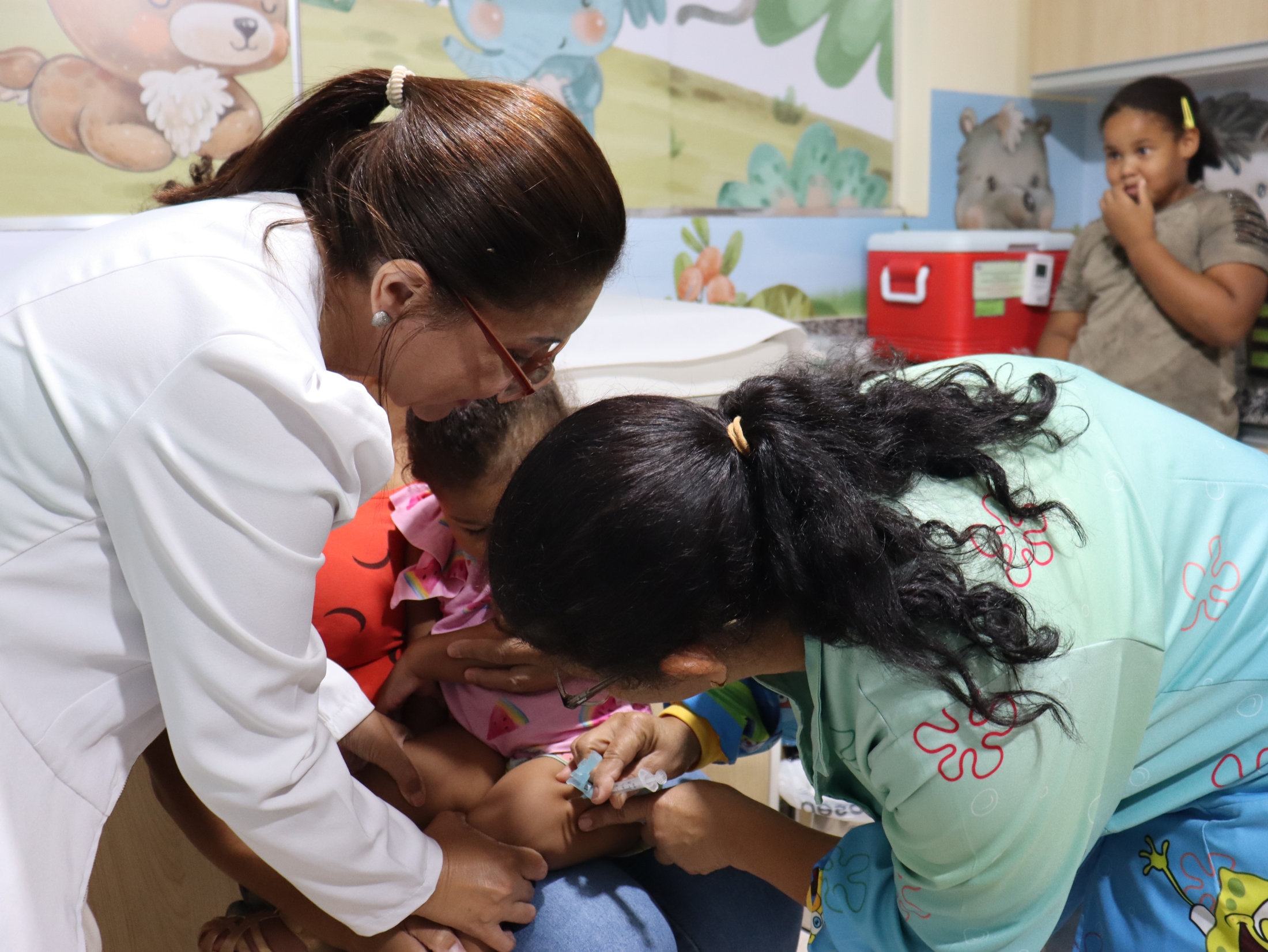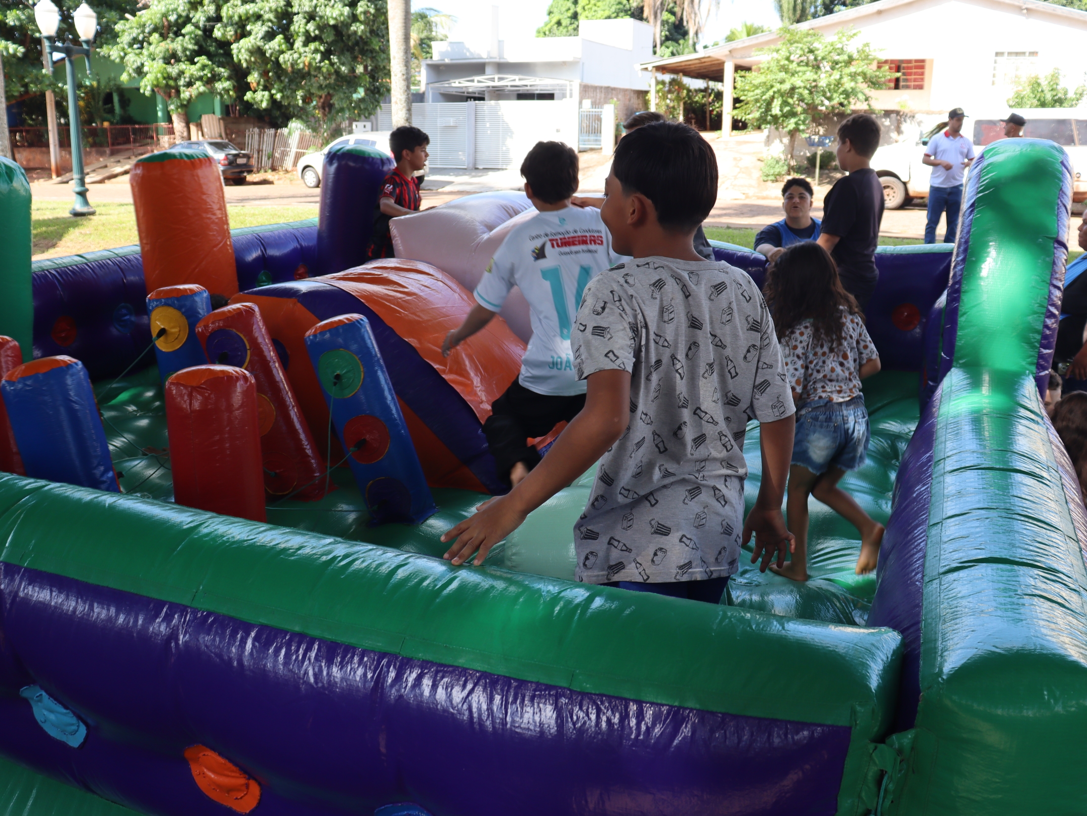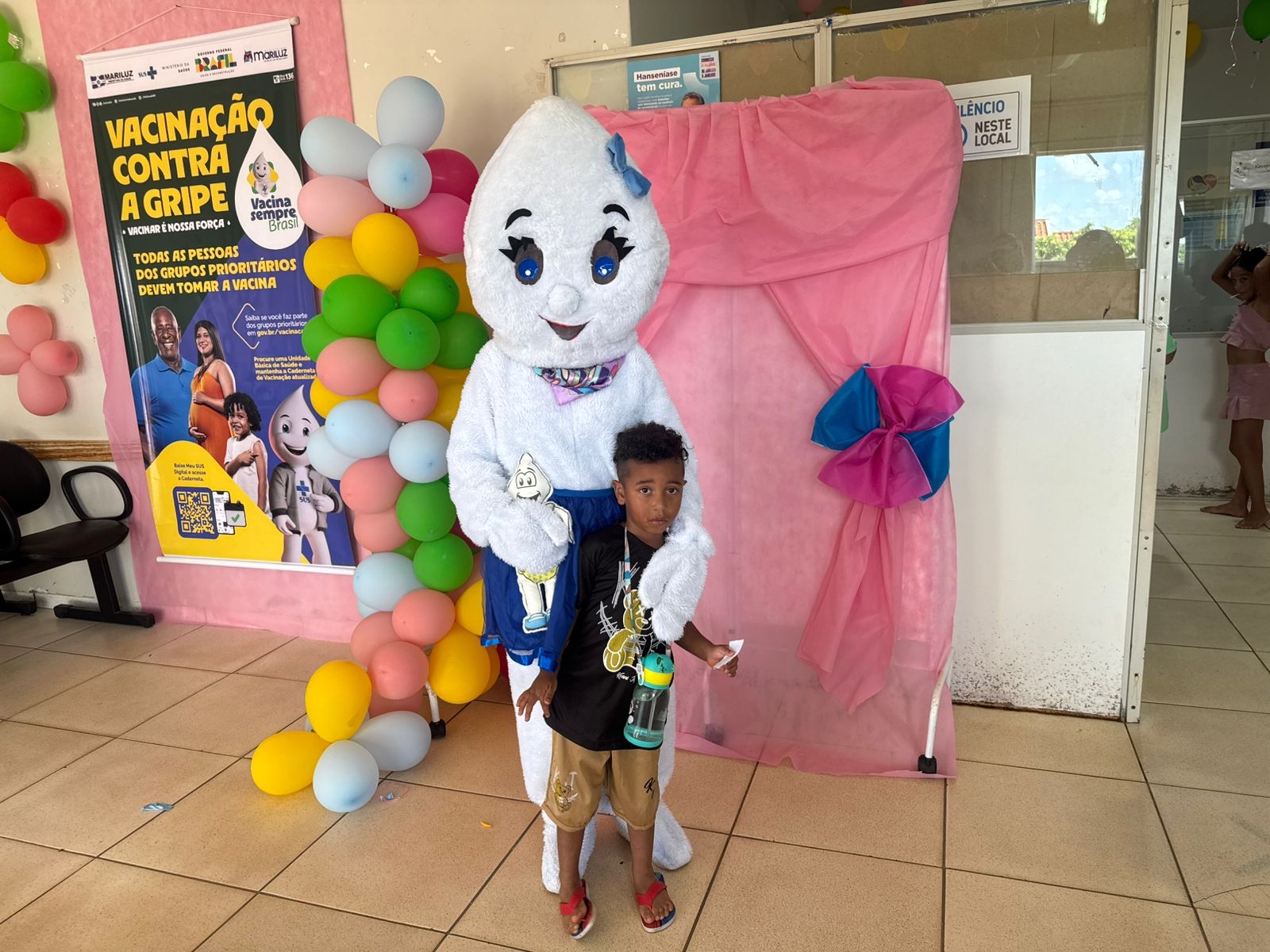 Pensando também no bem-estar das crianças e em tornar o momento mais leve e acolhedor, a campanha contou com passeio de trenzinho e brinquedos infláveis, transformando a vacinação em um momento de cuidado, prevenção e alegria para as famílias.
