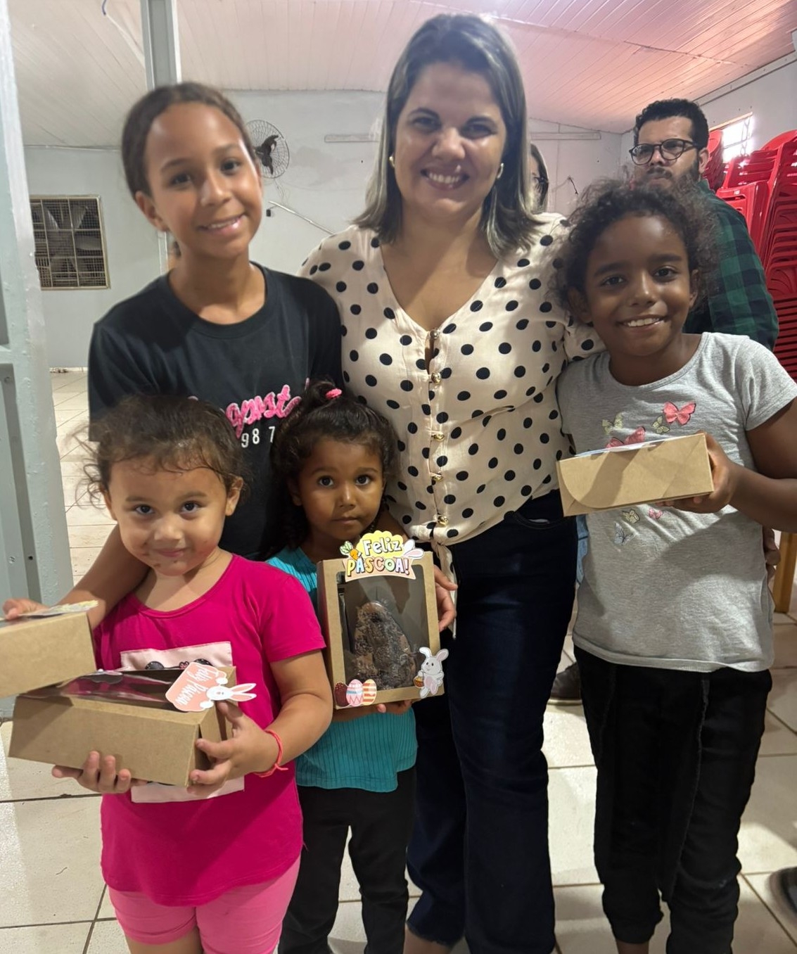 Ao final do evento, todas as crianças receberam ovos de Páscoa, encerrando a celebração com ainda mais sorrisos e felicidade. Ao todo, 110 crianças participaram do momento festivo, que reforçou a importância do convívio, da partilha e do fortalecimento de vínculos.